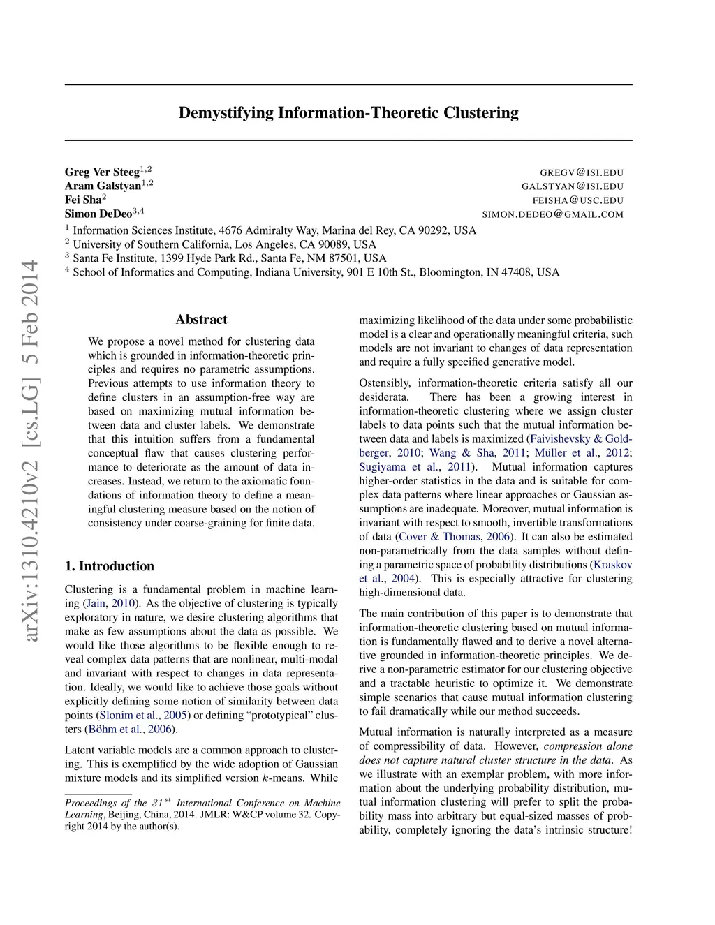 We propose a novel method for clustering data which is grounded in information-theoretic principles and requires no parametric assumptions. Previous attempts to use information theory to define clusters in an assumption-free way are based on maximizing mutual information between data and cluster labels. We demonstrate that this intuition suffers from a fundamental conceptual flaw that causes clustering performance to deteriorate as the amount of data increases. Instead, we return to the axiomatic foundations of information theory to define a meaningful clustering measure based on the notion of consistency under coarse-graining for finite data.