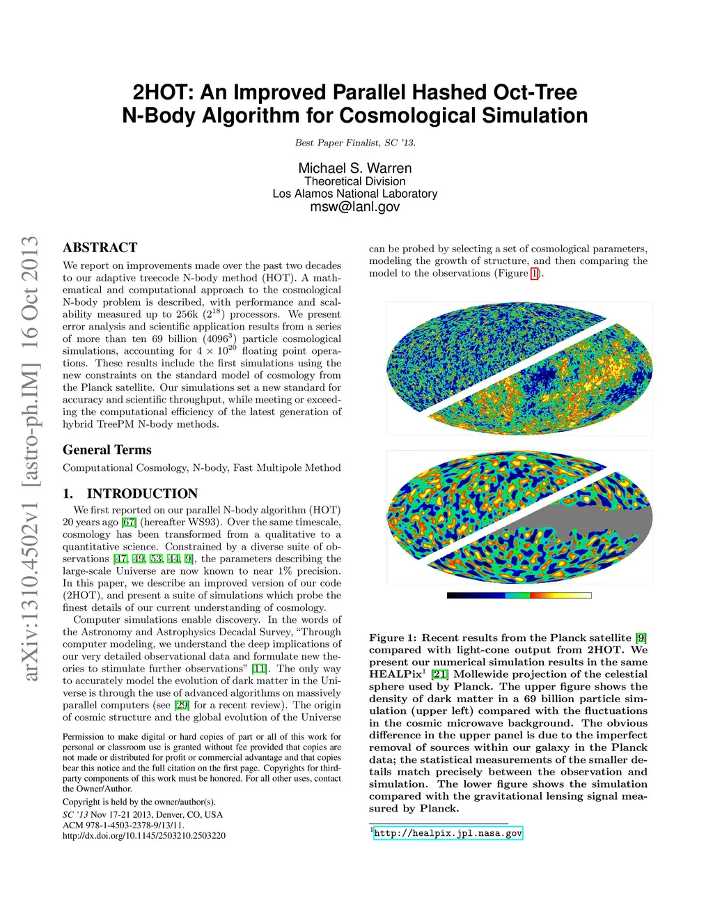We report on improvements made over the past two decades to our adaptive treecode N-body method (HOT). A mathematical and computational approach to the cosmological N-body problem is described, with performance and scalability measured up to 256k () processors. We present error analysis and scientific application results from a series of more than ten 69 billion () particle cosmological simulations, accounting for floating point operations. These results include the first simulations using the new constraints on the standard model of cosmology from the Planck satellite. Our simulations set a new standard for accuracy and scientific throughput, while meeting or exceeding the computational efficiency of the latest generation of hybrid TreePM N-body methods.
