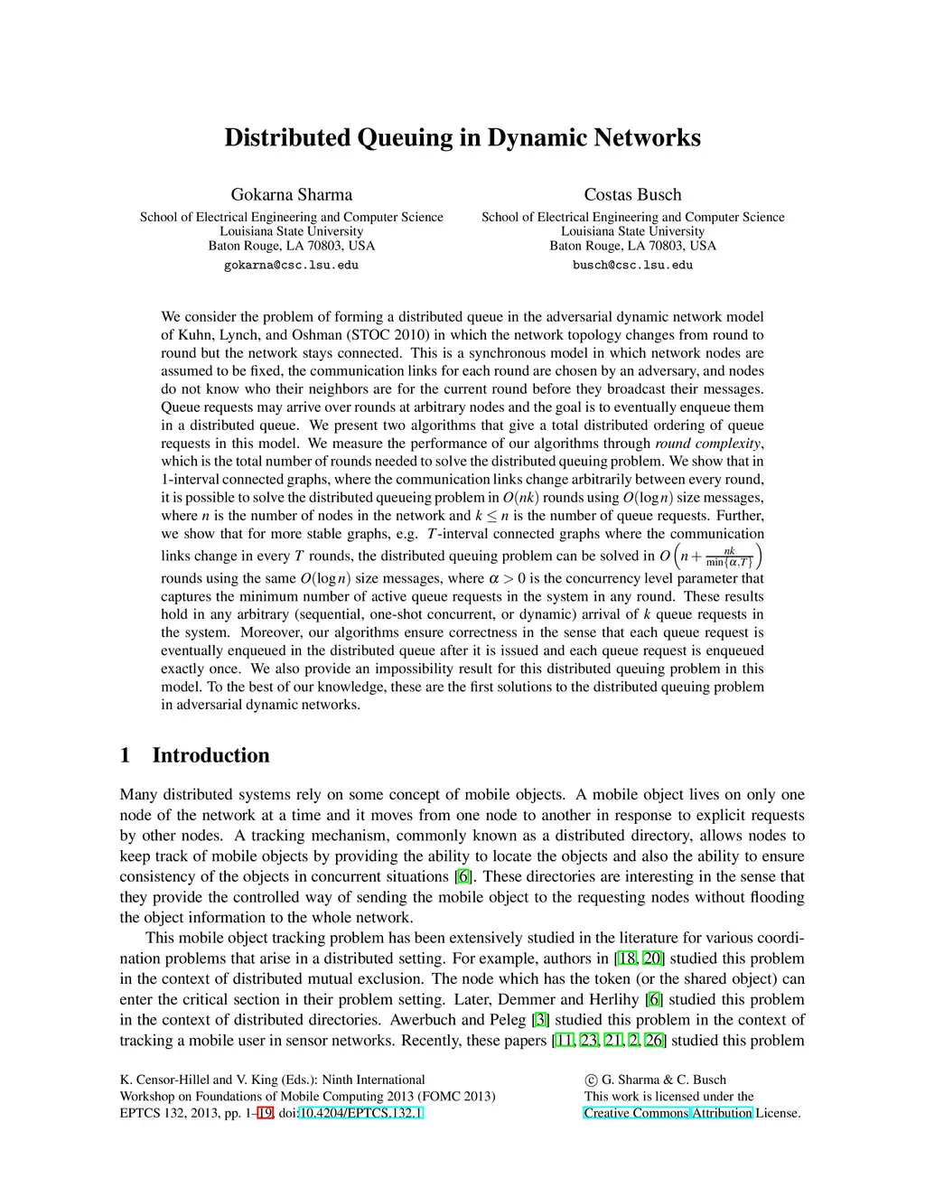 We consider the problem of forming a distributed queue in the adversarial dynamic network model of Kuhn, Lynch, and Oshman (STOC 2010) in which the network topology changes from round to round but the network stays connected. This is a synchronous model in which network nodes are assumed to be fixed, the communication links for each round are chosen by an adversary, and nodes do not know who their neighbors are for the current round before they broadcast their messages. Queue requests may arrive over rounds at arbitrary nodes and the goal is to eventually enqueue them in a distributed queue. We present two algorithms that give a total distributed ordering of queue requests in this model. We measure the performance of our algorithms through round complexity, which is the total number of rounds needed to solve the distributed queuing problem. We show that in 1-interval connected graphs, where the communication links change arbitrarily between every round, it is possible to solve the distributed queueing problem in O(nk) rounds using O(log n) size messages, where n is the number of nodes in the network and k <= n is the number of queue requests. Further, we show that for more stable graphs, e.g. T-interval connected graphs where the communication links change in every T rounds, the distributed queuing problem can be solved in O(n+ (nk/min(alpha,T))) rounds using the same O(log n) size messages, where alpha > 0 is the concurrency level parameter that captures the minimum number of active queue requests in the system in any round. These results hold in any arbitrary (sequential, one-shot concurrent, or dynamic) arrival of k queue requests in the system. Moreover, our algorithms ensure correctness in the sense that each queue request is eventually enqueued in the distributed queue after it is issued and each queue request is enqueued exactly once. We also provide an impossibility result for this distributed queuing problem in this model. To the best of our knowledge, these are the first solutions to the distributed queuing problem in adversarial dynamic networks.