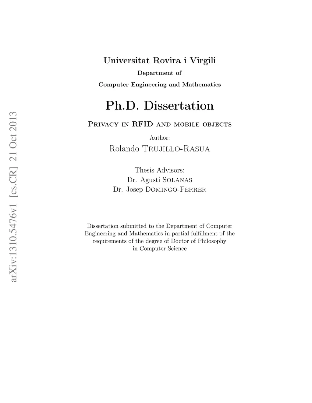 Privacy in RFID and mobile objects