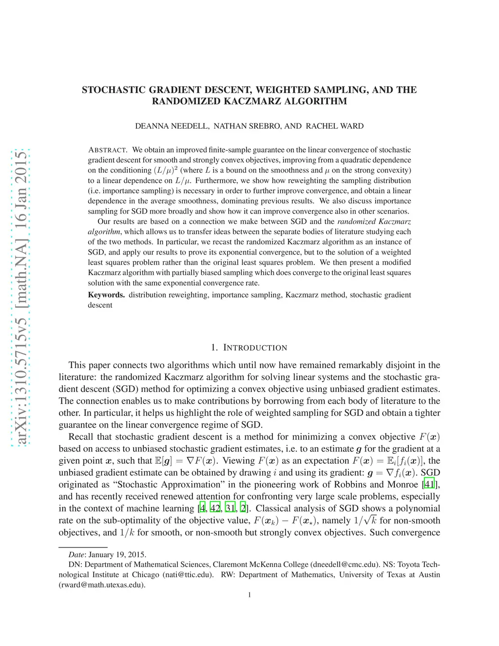 Stochastic Gradient Descent, Weighted Sampling, and the Randomized