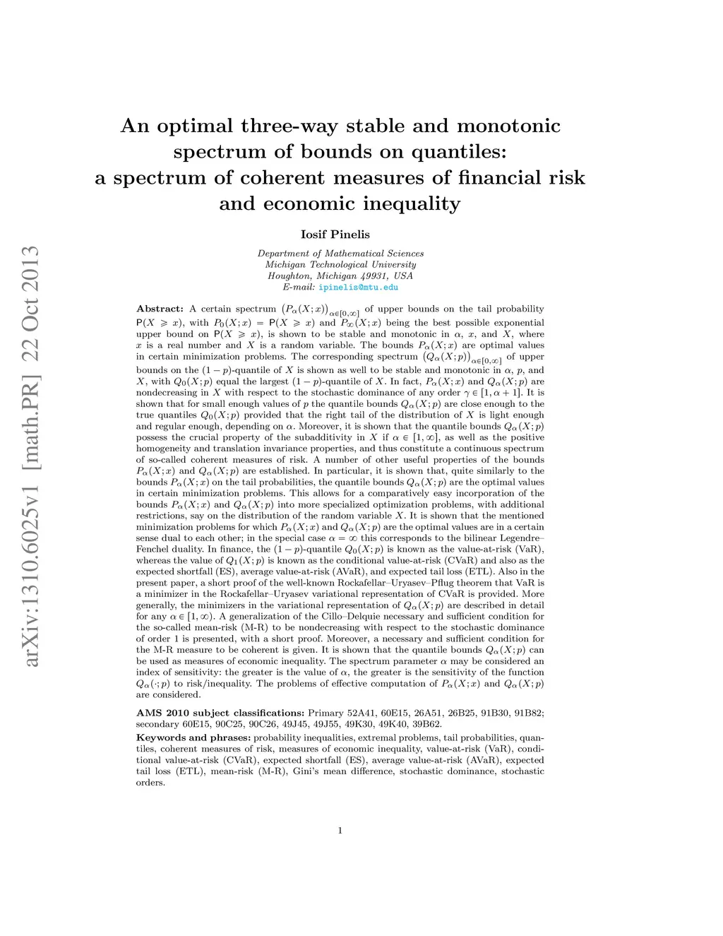 quantiles: a spectrum of coherent measures of financial risk and economic