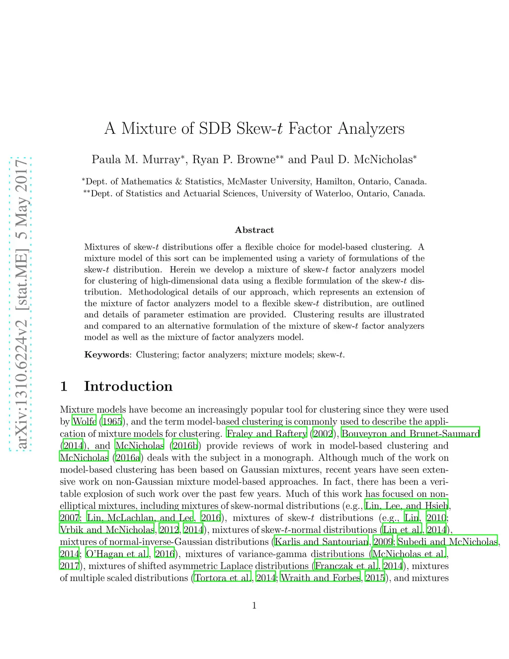 A Mixture of SDB Skew-t Factor Analyzers
