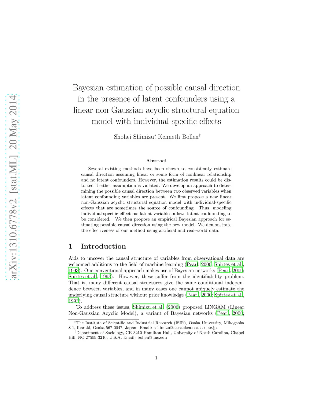 latent confounders using a linear non-Gaussian acyclic structural equation