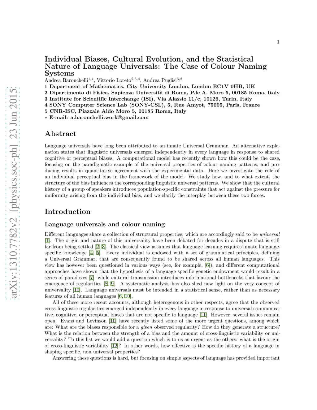Language Universals: The Case of Colour Naming Systems