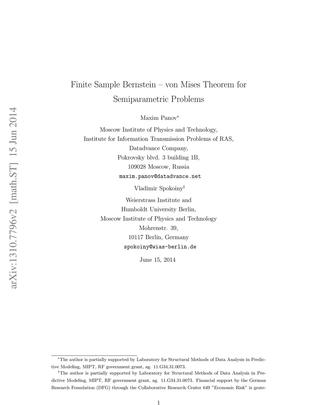 Finite Sample Bernstein -- von Mises Theorem for Semiparametric Problems