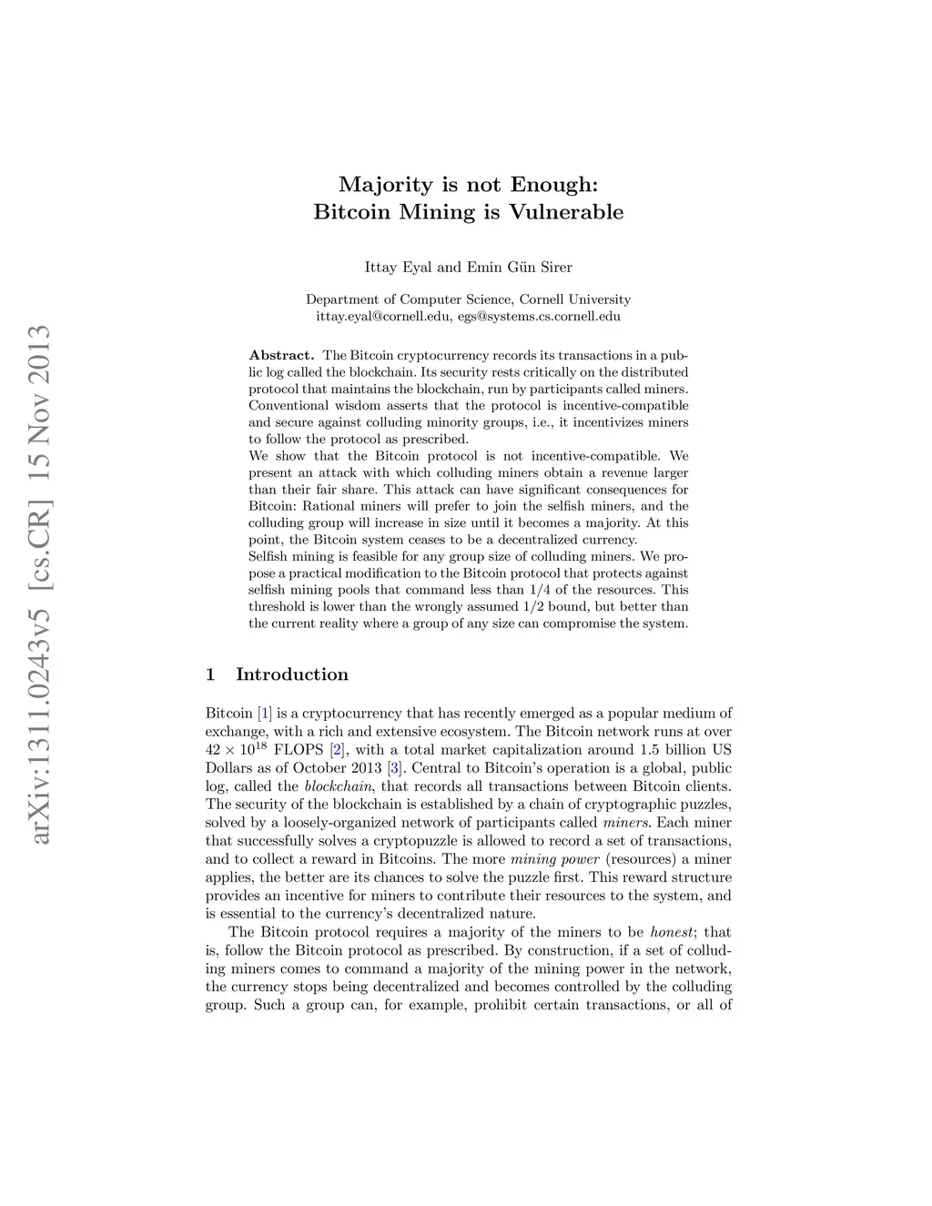 Majority is not Enough: Bitcoin Mining is Vulnerable