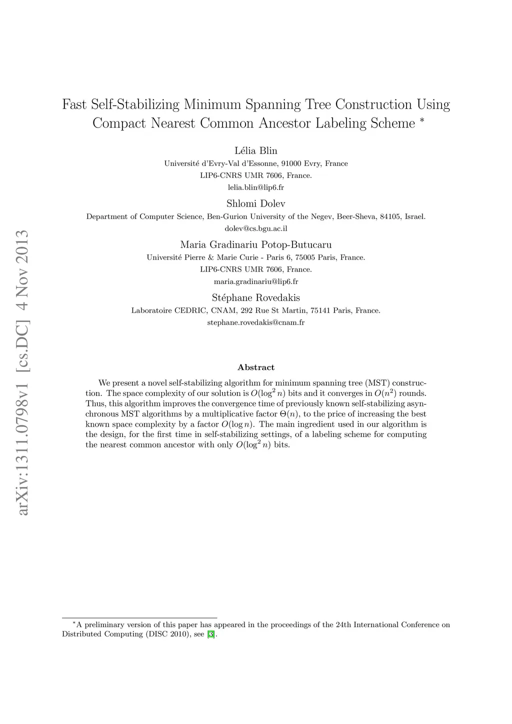 International Symposium on Distributed Computing (DISC), 2010