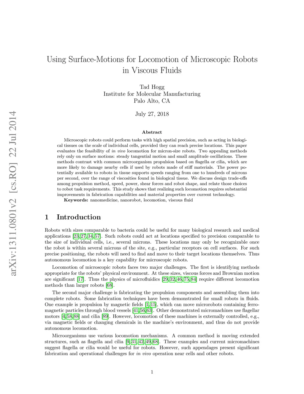 Using Surface-Motions for Locomotion of Microscopic Robots in Viscous