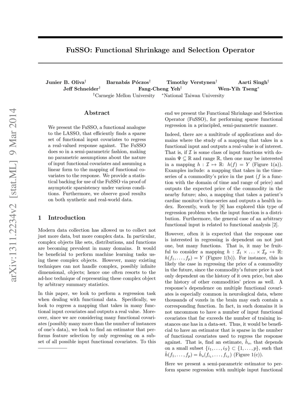 FuSSO: Functional Shrinkage and Selection Operator