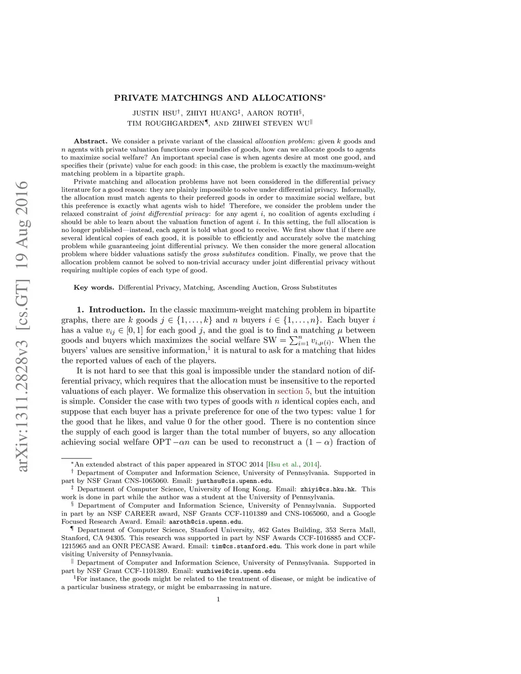 Private Matchings and Allocations