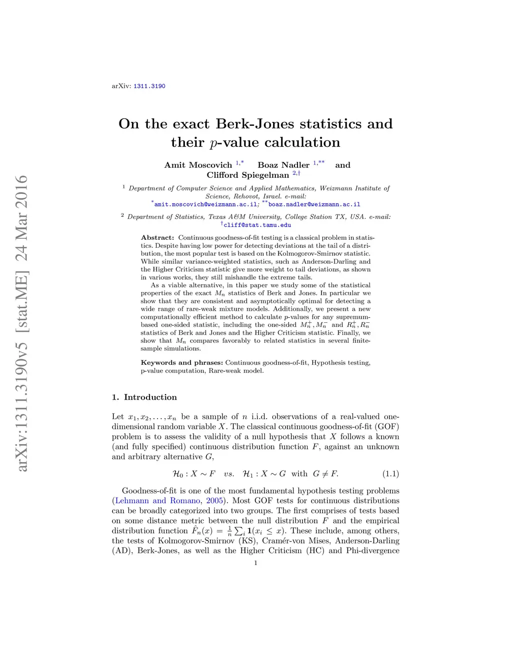 Continuous goodness-of-fit testing is a classical problem in statistics. Despite having low power for detecting deviations at the tail of a distribution, the most popular test is based on the Kolmogorov-Smirnov statistic. While similar variance-weighted statistics, such as Anderson-Darling and the Higher Criticism statistic give more weight to tail deviations, as shown in various works, they still mishandle the extreme tails. As a viable alternative, in this paper we study some of the statistical properties of the exact statistics of Berk and Jones. We derive the asymptotic null distributions of , and further prove their consistency as well as asymptotic optimality for a wide range of rare-weak mixture models. Additionally, we present a new computationally efficient method to calculate -values for any supremum-based one-sided statistic, including the one-sided and statistics of Berk and Jones and the Higher Criticism statistic. We illustrate our theoretical analysis with several finite-sample simulations.