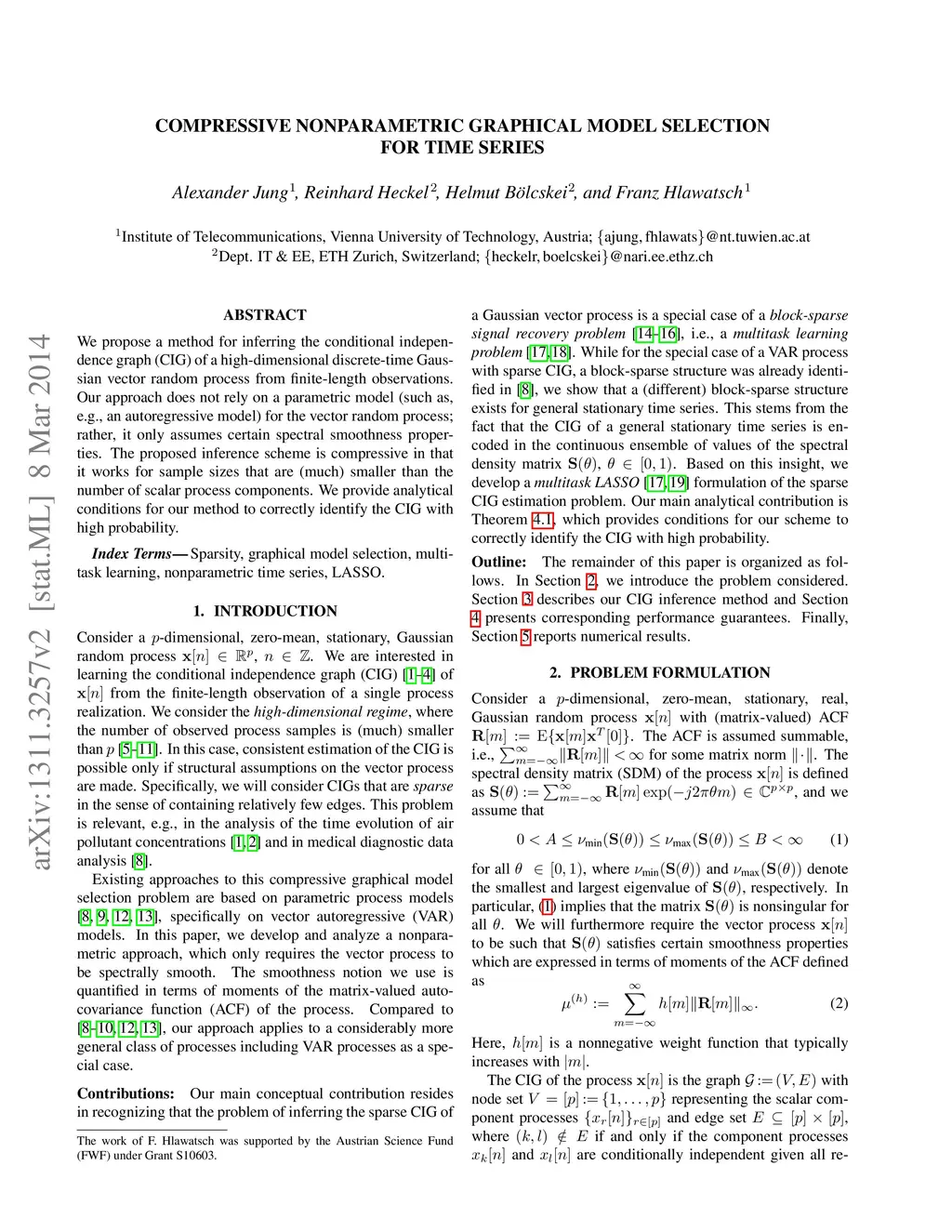 We propose a method for inferring the conditional indepen- dence graph (CIG) of a high-dimensional discrete-time Gaus- sian vector random process from finite-length observations. Our approach does not rely on a parametric model (such as, e.g., an autoregressive model) for the vector random process; rather, it only assumes certain spectral smoothness proper- ties. The proposed inference scheme is compressive in that it works for sample sizes that are (much) smaller than the number of scalar process components. We provide analytical conditions for our method to correctly identify the CIG with high probability.