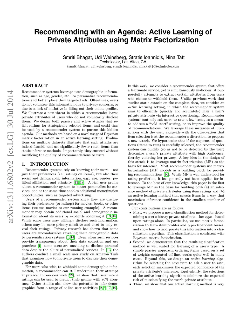 Recommending with an Agenda: Active Learning of Private Attributes using