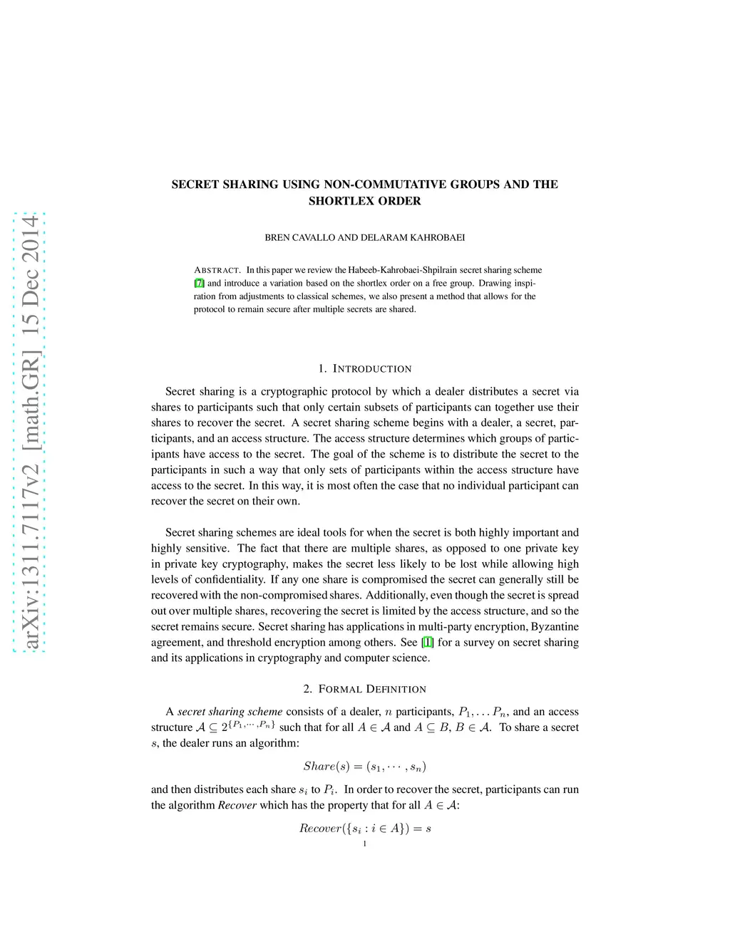 In this paper we review the Habeeb-Kahrobaei-Shpilrain secret sharing scheme and introduce a variation based on the shortlex order on a free group. Drawing inspiration from adjustments to classical schemes, we also present a method that allows for the protocol to remain secure after multiple secrets are shared.