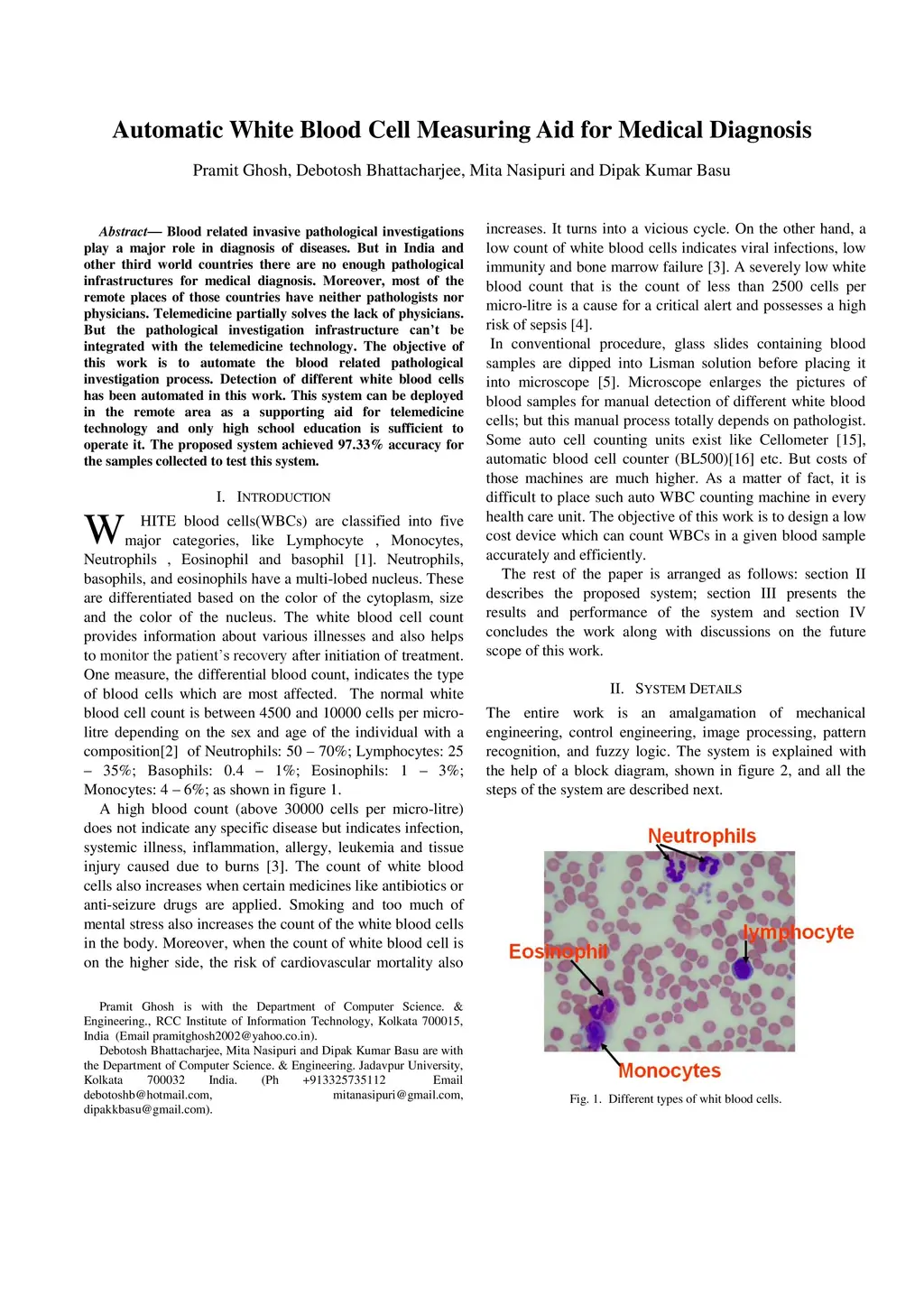 Automatic White Blood Cell Measuring Aid for Medical Diagnosis