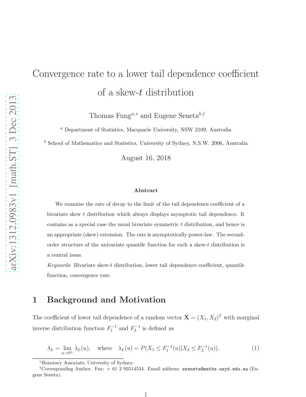 Journal of Multivariate Analysis (J. Multivar. Anal.), 2013