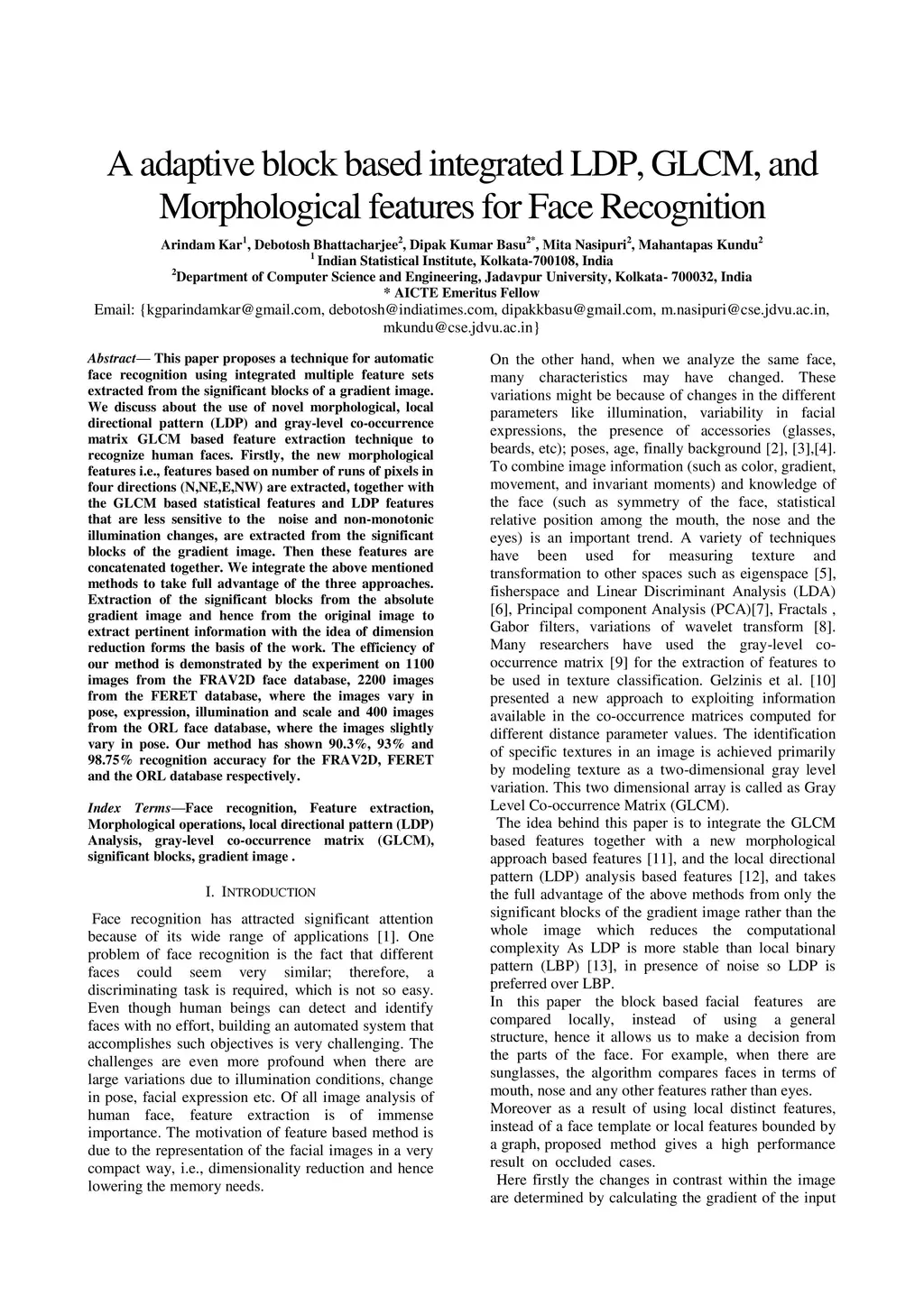 An adaptive block based integrated LDP,GLCM,and Morphological features