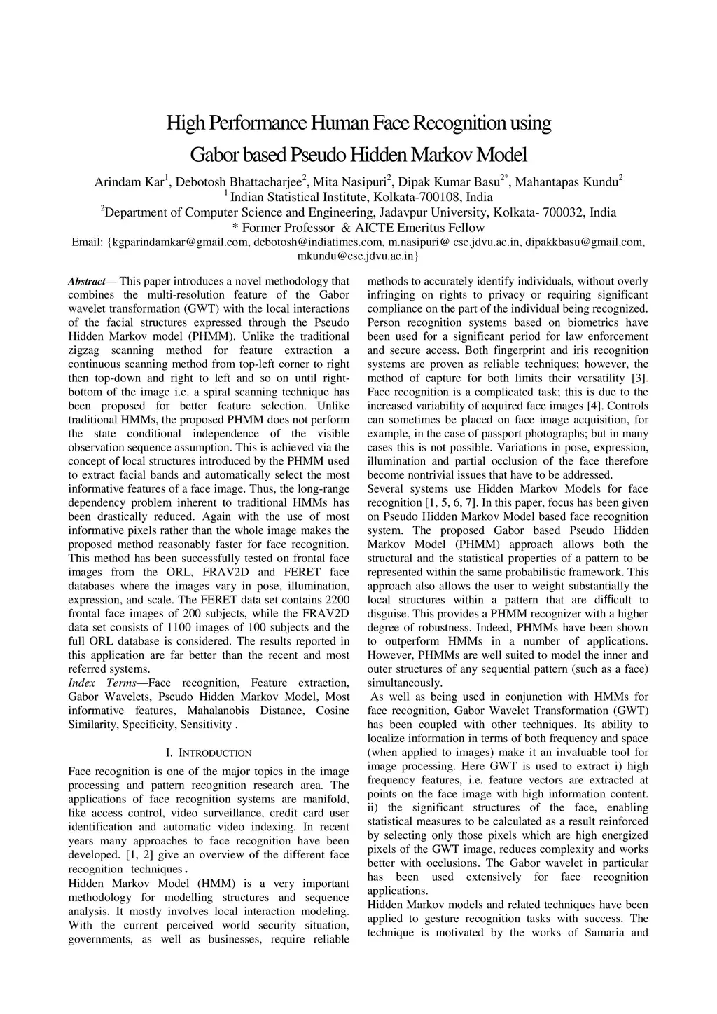 High Performance Human Face Recognition using Gabor based Pseudo Hidden