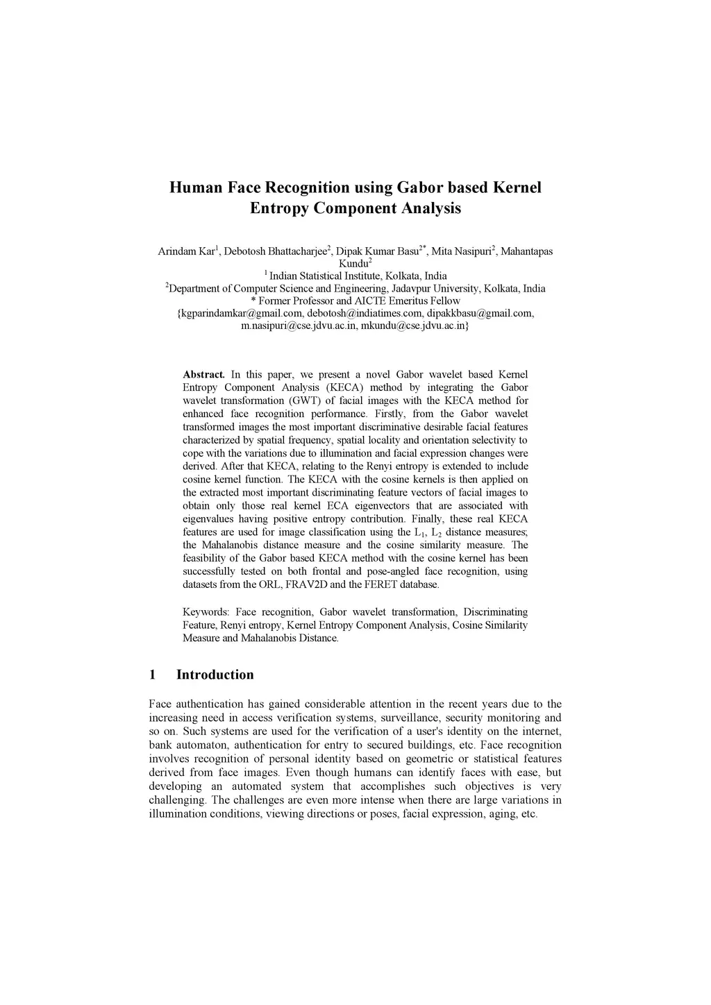 Human Face Recognition using Gabor based Kernel Entropy Component