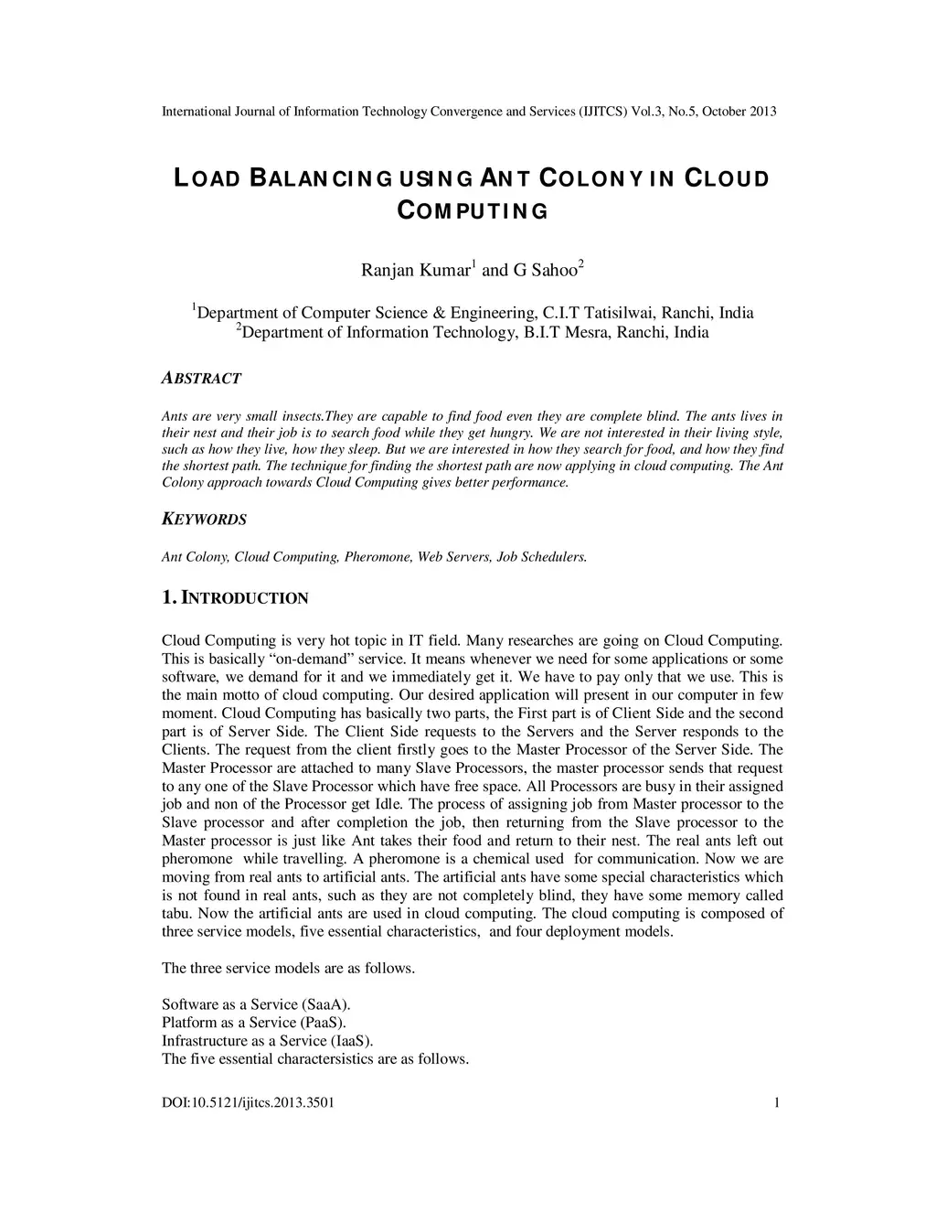 Ants are very small insects.They are capable to find food even they are complete blind. The ants lives in their nest and their job is to search food while they get hungry. We are not interested in their living style, such as how they live, how they sleep. But we are interested in how they search for food, and how they find the shortest path. The technique for finding the shortest path are now applying in cloud computing. The Ant Colony approach towards Cloud Computing gives better performance.