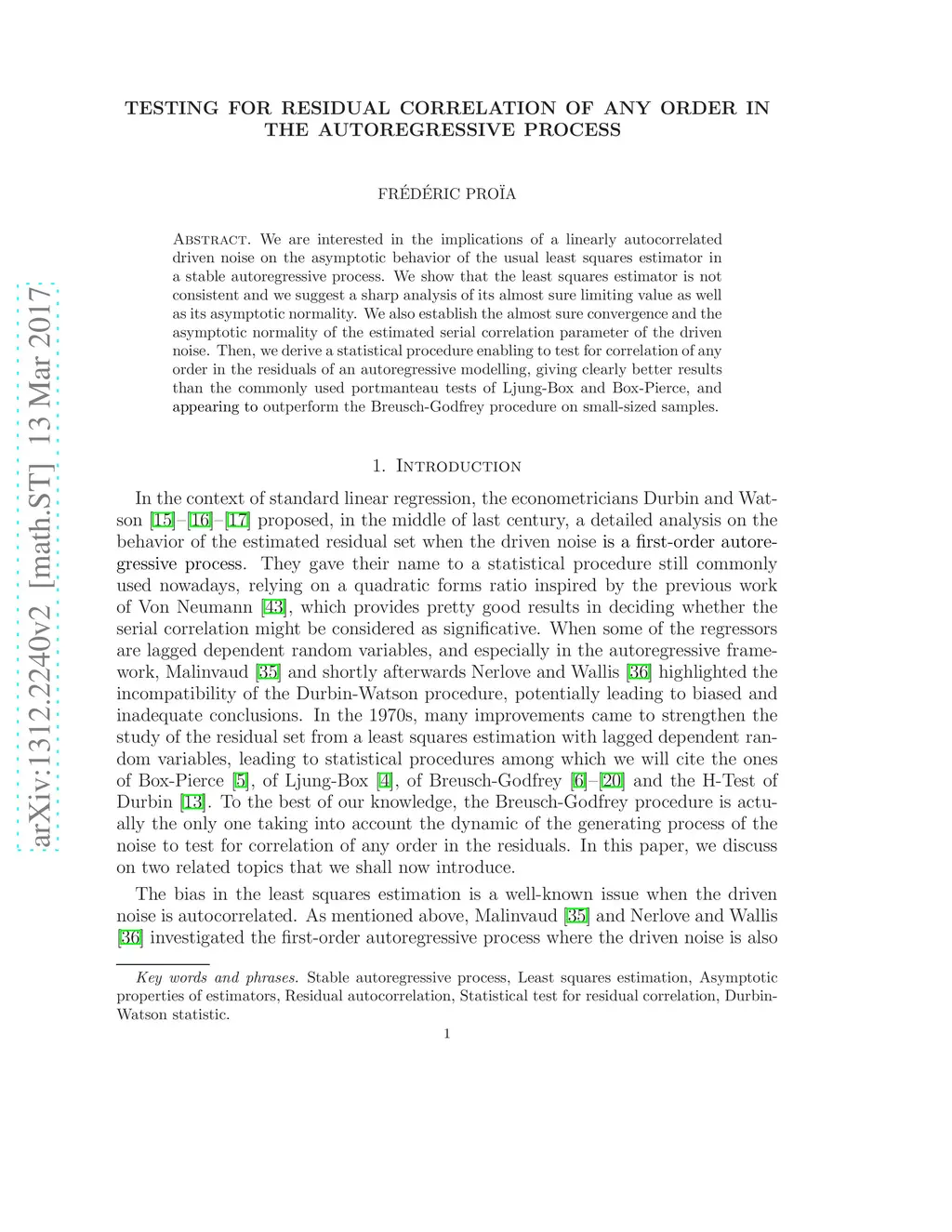 We are interested in the implications of a linearly autocorrelated driven noise on the asymptotic behavior of the usual least squares estimator in a stable autoregressive process. We show that the least squares estimator is not consistent and we suggest a sharp analysis of its almost sure limiting value as well as its asymptotic normality. We also establish the almost sure convergence and the asymptotic normality of the estimated serial correlation parameter of the driven noise. Then, we derive a statistical procedure enabling to test for correlation of any order in the residuals of an autoregressive modelling, giving clearly better results than the commonly used portmanteau tests of Ljung-Box and Box-Pierce, and appearing to outperform the Breusch-Godfrey procedure on small-sized samples.