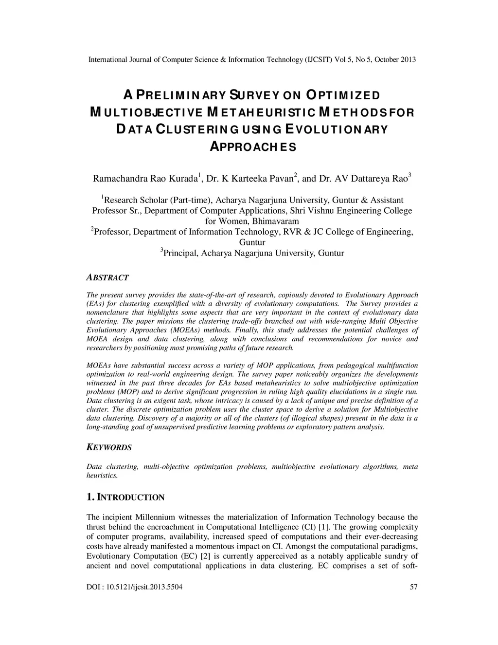 The present survey provides the state-of-the-art of research, copiously devoted to Evolutionary Approach (EAs) for clustering exemplified with a diversity of evolutionary computations. The Survey provides a nomenclature that highlights some aspects that are very important in the context of evolutionary data clustering. The paper missions the clustering trade-offs branched out with wide-ranging Multi Objective Evolutionary Approaches (MOEAs) methods. Finally, this study addresses the potential challenges of MOEA design and data clustering, along with conclusions and recommendations for novice and researchers by positioning most promising paths of future research. MOEAs have substantial success across a variety of MOP applications, from pedagogical multifunction optimization to real-world engineering design. The survey paper noticeably organizes the developments witnessed in the past three decades for EAs based metaheuristics to solve multiobjective optimization problems (MOP) and to derive significant progression in ruling high quality elucidations in a single run. Data clustering is an exigent task, whose intricacy is caused by a lack of unique and precise definition of a cluster. The discrete optimization problem uses the cluster space to derive a solution for Multiobjective data clustering. Discovery of a majority or all of the clusters (of illogical shapes) present in the data is a long-standing goal of unsupervised predictive learning problems or exploratory pattern analysis.