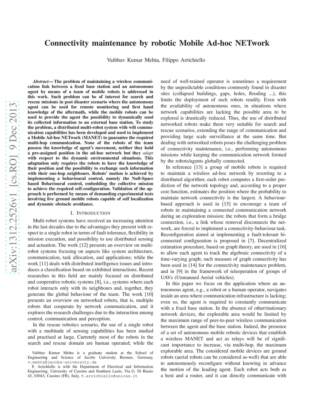 Connectivity maintenance by robotic Mobile Ad-hoc NETwork
