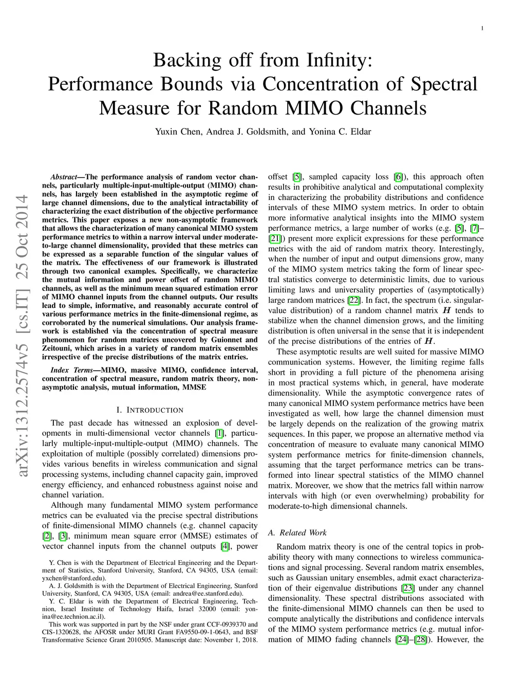 The performance analysis of random vector channels, particularly multiple-input-multiple-output (MIMO) channels, has largely been established in the asymptotic regime of large channel dimensions, due to the analytical intractability of characterizing the exact distribution of the objective performance metrics. This paper exposes a new non-asymptotic framework that allows the characterization of many canonical MIMO system performance metrics to within a narrow interval under moderate-to-large channel dimensionality, provided that these metrics can be expressed as a separable function of the singular values of the matrix. The effectiveness of our framework is illustrated through two canonical examples. Specifically, we characterize the mutual information and power offset of random MIMO channels, as well as the minimum mean squared estimation error of MIMO channel inputs from the channel outputs. Our results lead to simple, informative, and reasonably accurate control of various performance metrics in the finite-dimensional regime, as corroborated by the numerical simulations. Our analysis framework is established via the concentration of spectral measure phenomenon for random matrices uncovered by Guionnet and Zeitouni, which arises in a variety of random matrix ensembles irrespective of the precise distributions of the matrix entries.