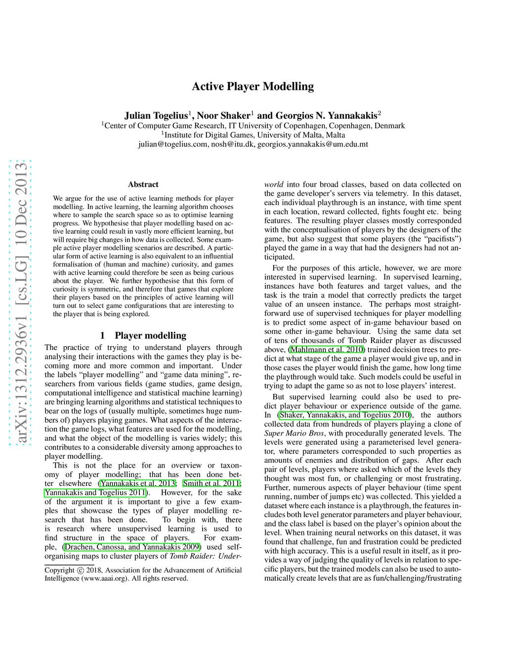 We argue for the use of active learning methods for player modelling. In active learning, the learning algorithm chooses where to sample the search space so as to optimise learning progress. We hypothesise that player modelling based on active learning could result in vastly more efficient learning, but will require big changes in how data is collected. Some example active player modelling scenarios are described. A particular form of active learning is also equivalent to an influential formalisation of (human and machine) curiosity, and games with active learning could therefore be seen as being curious about the player. We further hypothesise that this form of curiosity is symmetric, and therefore that games that explore their players based on the principles of active learning will turn out to select game configurations that are interesting to the player that is being explored.