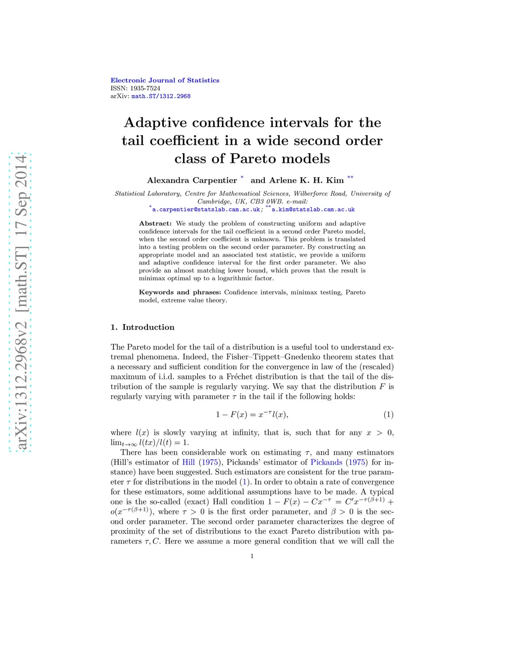 We study the problem of constructing honest and adaptive confidence intervals for the tail coefficient in the second order Pareto model, when the second order coefficient is unknown. This problem is translated into a testing problem on the second order parameter. By constructing an appropriate model and an associated test statistic, we provide a uniform and adaptive confidence interval for the first order parameter. We also provide an almost matching lower bound, which proves that the result is minimax optimal up to a logarithmic factor.
