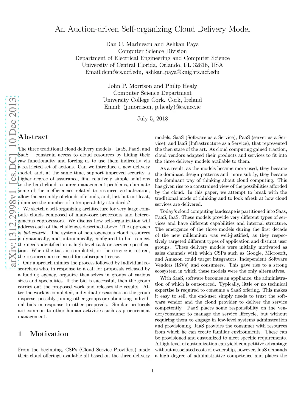 An Auction-driven Self-organizing Cloud Delivery Model