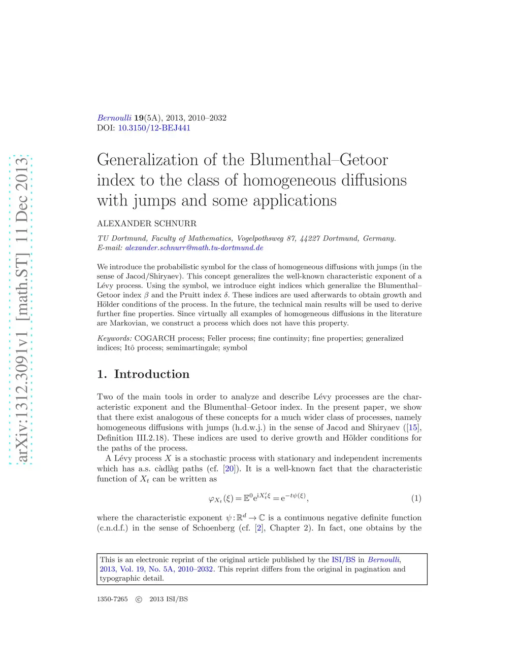 Generalization of the Blumenthal-Getoor index to the class of