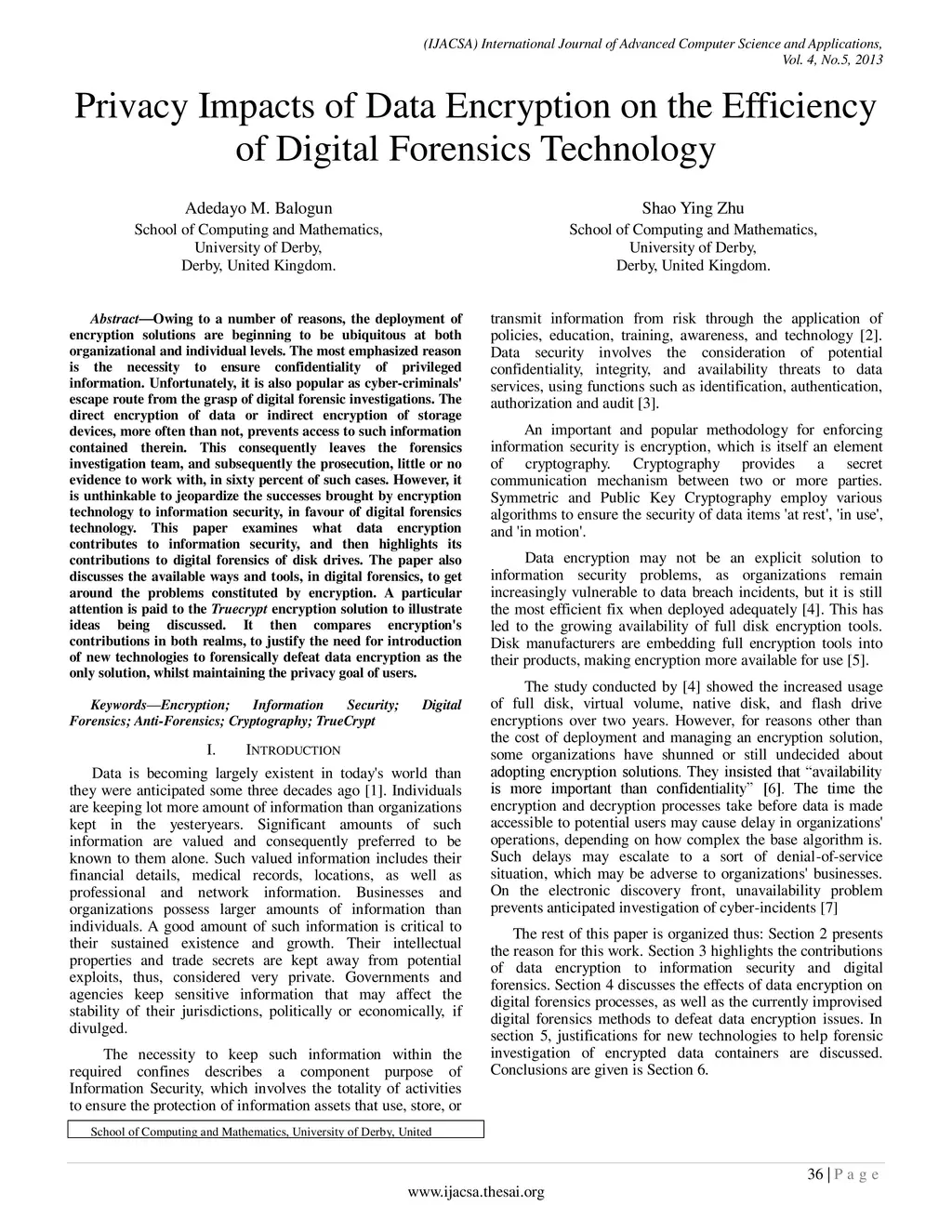 Owing to a number of reasons, the deployment of encryption solutions are beginning to be ubiquitous at both organizational and individual levels. The most emphasized reason is the necessity to ensure confidentiality of privileged information. Unfortunately, it is also popular as cyber-criminals' escape route from the grasp of digital forensic investigations. The direct encryption of data or indirect encryption of storage devices, more often than not, prevents access to such information contained therein. This consequently leaves the forensics investigation team, and subsequently the prosecution, little or no evidence to work with, in sixty percent of such cases. However, it is unthinkable to jeopardize the successes brought by encryption technology to information security, in favour of digital forensics technology. This paper examines what data encryption contributes to information security, and then highlights its contributions to digital forensics of disk drives. The paper also discusses the available ways and tools, in digital forensics, to get around the problems constituted by encryption. A particular attention is paid to the Truecrypt encryption solution to illustrate ideas being discussed. It then compares encryption's contributions in both realms, to justify the need for introduction of new technologies to forensically defeat data encryption as the only solution, whilst maintaining the privacy goal of users.