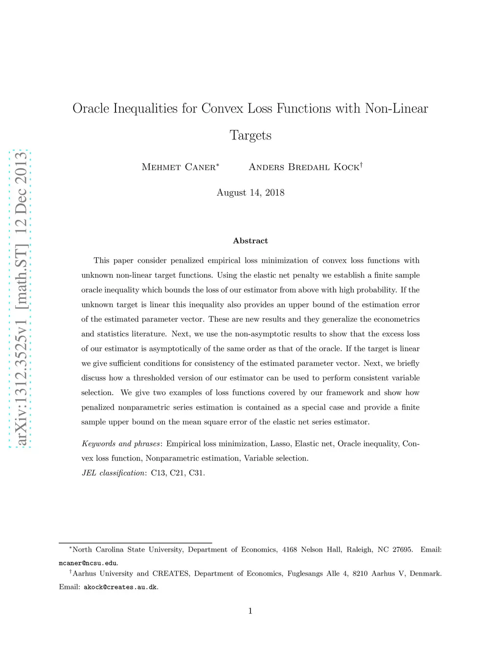 This paper consider penalized empirical loss minimization of convex loss functions with unknown non-linear target functions. Using the elastic net penalty we establish a finite sample oracle inequality which bounds the loss of our estimator from above with high probability. If the unknown target is linear this inequality also provides an upper bound of the estimation error of the estimated parameter vector. These are new results and they generalize the econometrics and statistics literature. Next, we use the non-asymptotic results to show that the excess loss of our estimator is asymptotically of the same order as that of the oracle. If the target is linear we give sufficient conditions for consistency of the estimated parameter vector. Next, we briefly discuss how a thresholded version of our estimator can be used to perform consistent variable selection. We give two examples of loss functions covered by our framework and show how penalized nonparametric series estimation is contained as a special case and provide a finite sample upper bound on the mean square error of the elastic net series estimator.