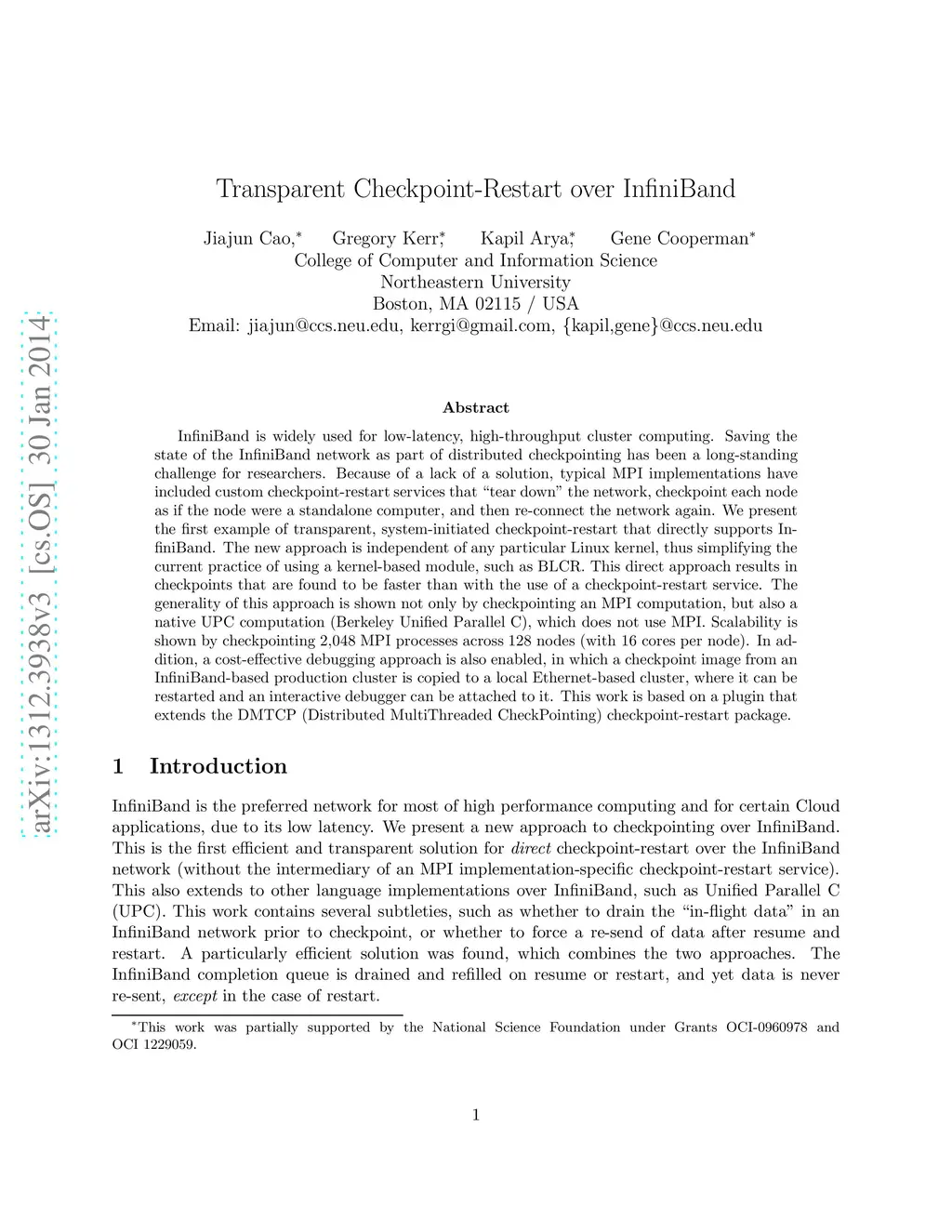 Transparent Checkpoint-Restart over InfiniBand