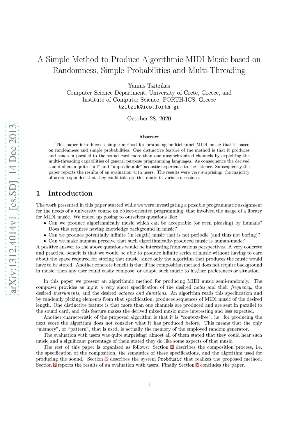 A Simple Method to Produce Algorithmic MIDI Music based on Randomness,