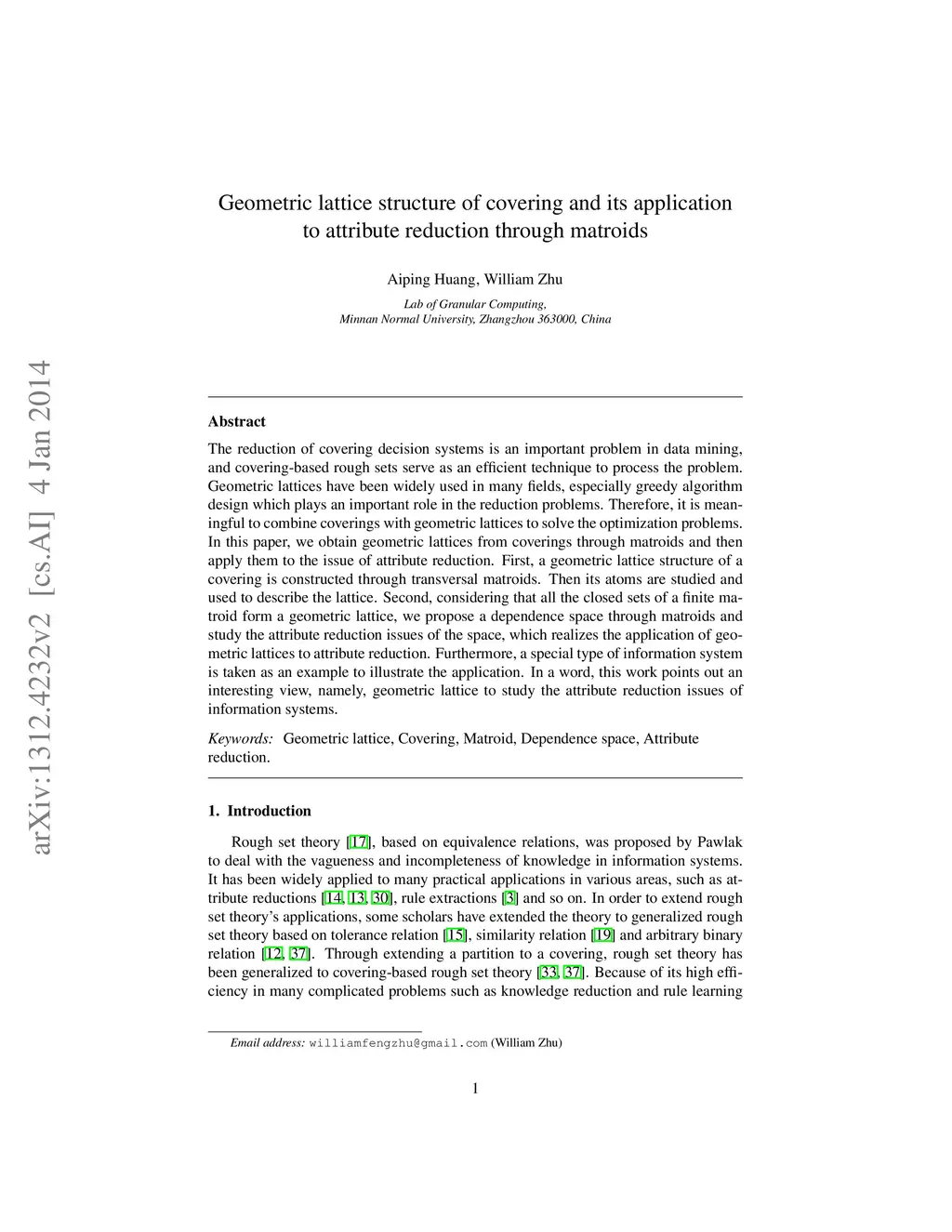 Geometric lattice structure of covering and its application to attribute
