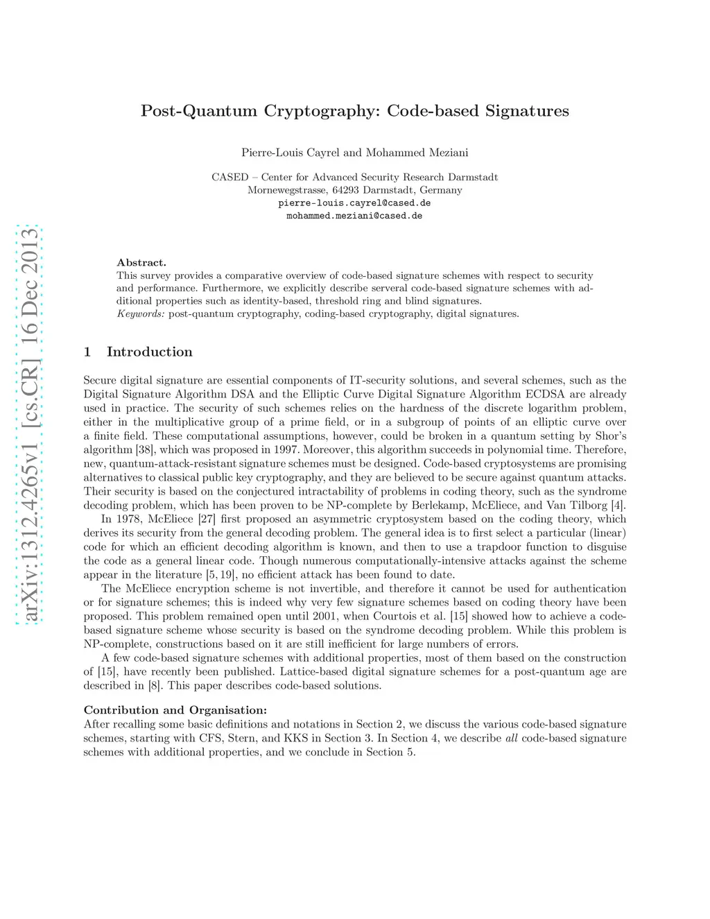 This survey provides a comparative overview of code-based signature schemes with respect to security and performance. Furthermore, we explicitly describe serveral code-based signature schemes with additional properties such as identity-based, threshold ring and blind signatures.