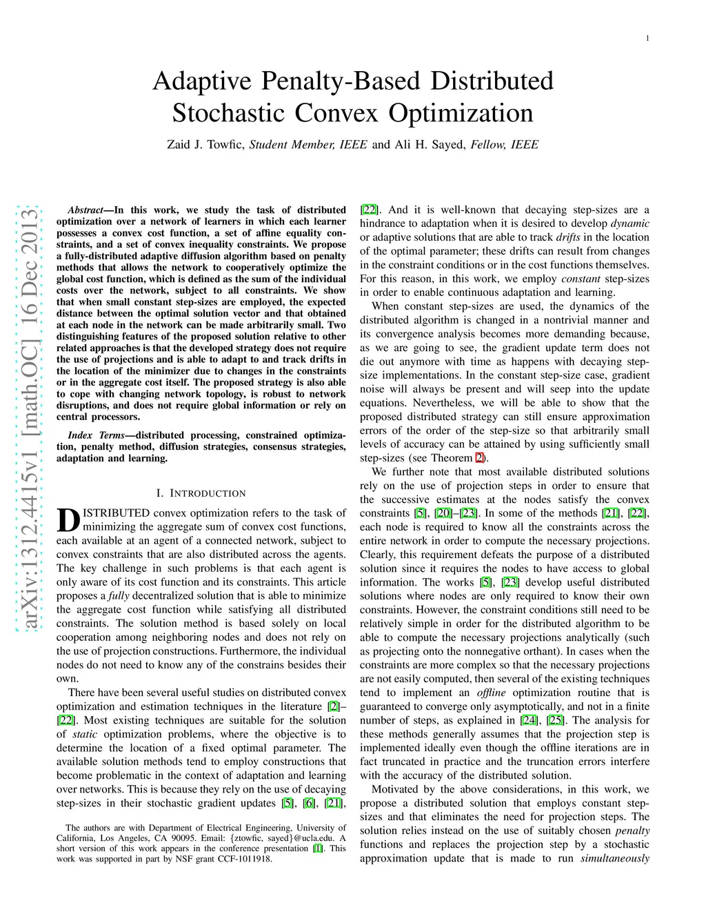 In this work, we study the task of distributed optimization over a network of learners in which each learner possesses a convex cost function, a set of affine equality constraints, and a set of convex inequality constraints. We propose a fully-distributed adaptive diffusion algorithm based on penalty methods that allows the network to cooperatively optimize the global cost function, which is defined as the sum of the individual costs over the network, subject to all constraints. We show that when small constant step-sizes are employed, the expected distance between the optimal solution vector and that obtained at each node in the network can be made arbitrarily small. Two distinguishing features of the proposed solution relative to other related approaches is that the developed strategy does not require the use of projections and is able to adapt to and track drifts in the location of the minimizer due to changes in the constraints or in the aggregate cost itself. The proposed strategy is also able to cope with changing network topology, is robust to network disruptions, and does not require global information or rely on central processors.
