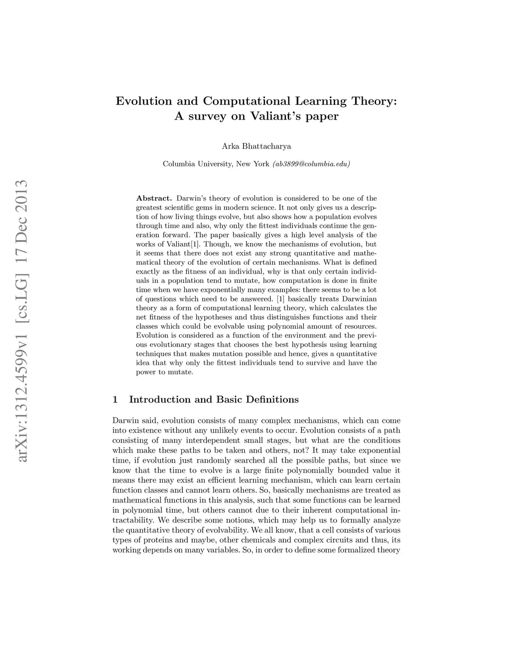 Evolution and Computational Learning Theory: A survey on Valiant's paper