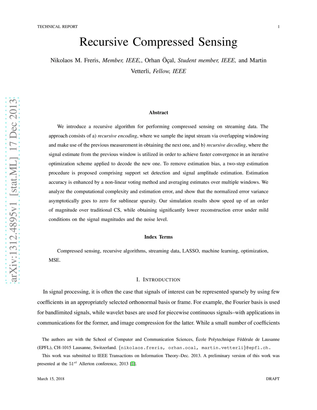 Recursive Compressed Sensing
