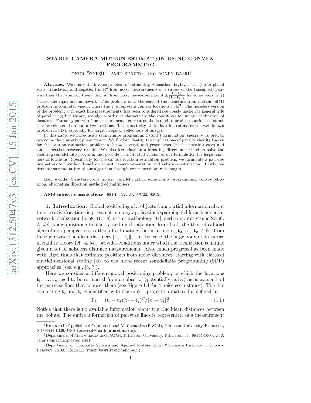 Stable Camera Motion Estimation Using Convex Programming