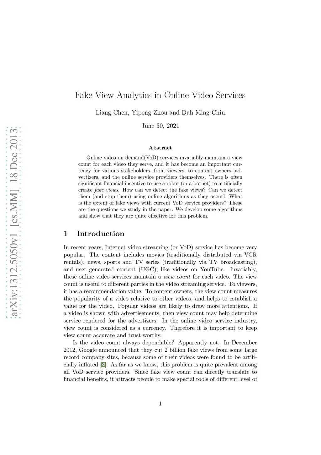 Online video-on-demand(VoD) services invariably maintain a view count for each video they serve, and it has become an important currency for various stakeholders, from viewers, to content owners, advertizers, and the online service providers themselves. There is often significant financial incentive to use a robot (or a botnet) to artificially create fake views. How can we detect the fake views? Can we detect them (and stop them) using online algorithms as they occur? What is the extent of fake views with current VoD service providers? These are the questions we study in the paper. We develop some algorithms and show that they are quite effective for this problem.