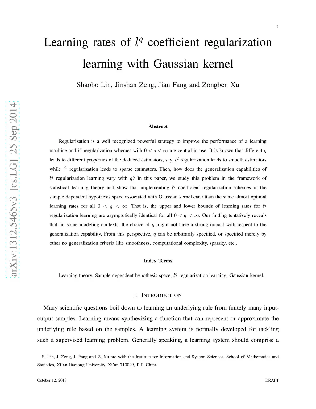Regularization is a well recognized powerful strategy to improve the performance of a learning machine and regularization schemes with are central in use. It is known that different leads to different properties of the deduced estimators, say, regularization leads to smooth estimators while regularization leads to sparse estimators. Then, how does the generalization capabilities of regularization learning vary with ? In this paper, we study this problem in the framework of statistical learning theory and show that implementing coefficient regularization schemes in the sample dependent hypothesis space associated with Gaussian kernel can attain the same almost optimal learning rates for all . That is, the upper and lower bounds of learning rates for regularization learning are asymptotically identical for all . Our finding tentatively reveals that, in some modeling contexts, the choice of might not have a strong impact with respect to the generalization capability. From this perspective, can be arbitrarily specified, or specified merely by other no generalization criteria like smoothness, computational complexity, sparsity, etc..