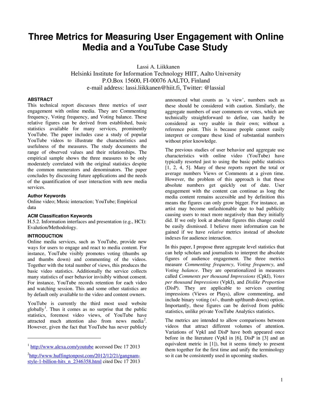 Three Metrics for Measuring User Engagement with Online Media and a