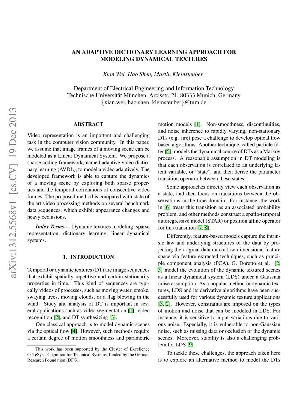 An Adaptive Dictionary Learning Approach for Modeling Dynamical Textures