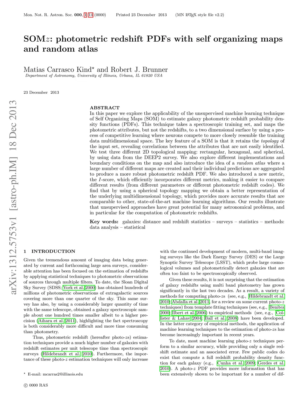 In this paper we explore the applicability of the unsupervised machine learning technique of Self Organizing Maps (SOM) to estimate galaxy photometric redshift probability density functions (PDFs). This technique takes a spectroscopic training set, and maps the photometric attributes, but not the redshifts, to a two dimensional surface by using a process of competitive learning where neurons compete to more closely resemble the training data multidimensional space. The key feature of a SOM is that it retains the topology of the input set, revealing correlations between the attributes that are not easily identified. We test three different 2D topological mapping: rectangular, hexagonal, and spherical, by using data from the DEEP2 survey. We also explore different implementations and boundary conditions on the map and also introduce the idea of a random atlas where a large number of different maps are created and their individual predictions are aggregated to produce a more robust photometric redshift PDF. We also introduced a new metric, the -score, which efficiently incorporates different metrics, making it easier to compare different results (from different parameters or different photometric redshift codes). We find that by using a spherical topology mapping we obtain a better representation of the underlying multidimensional topology, which provides more accurate results that are comparable to other, state-of-the-art machine learning algorithms. Our results illustrate that unsupervised approaches have great potential for many astronomical problems, and in particular for the computation of photometric redshifts.