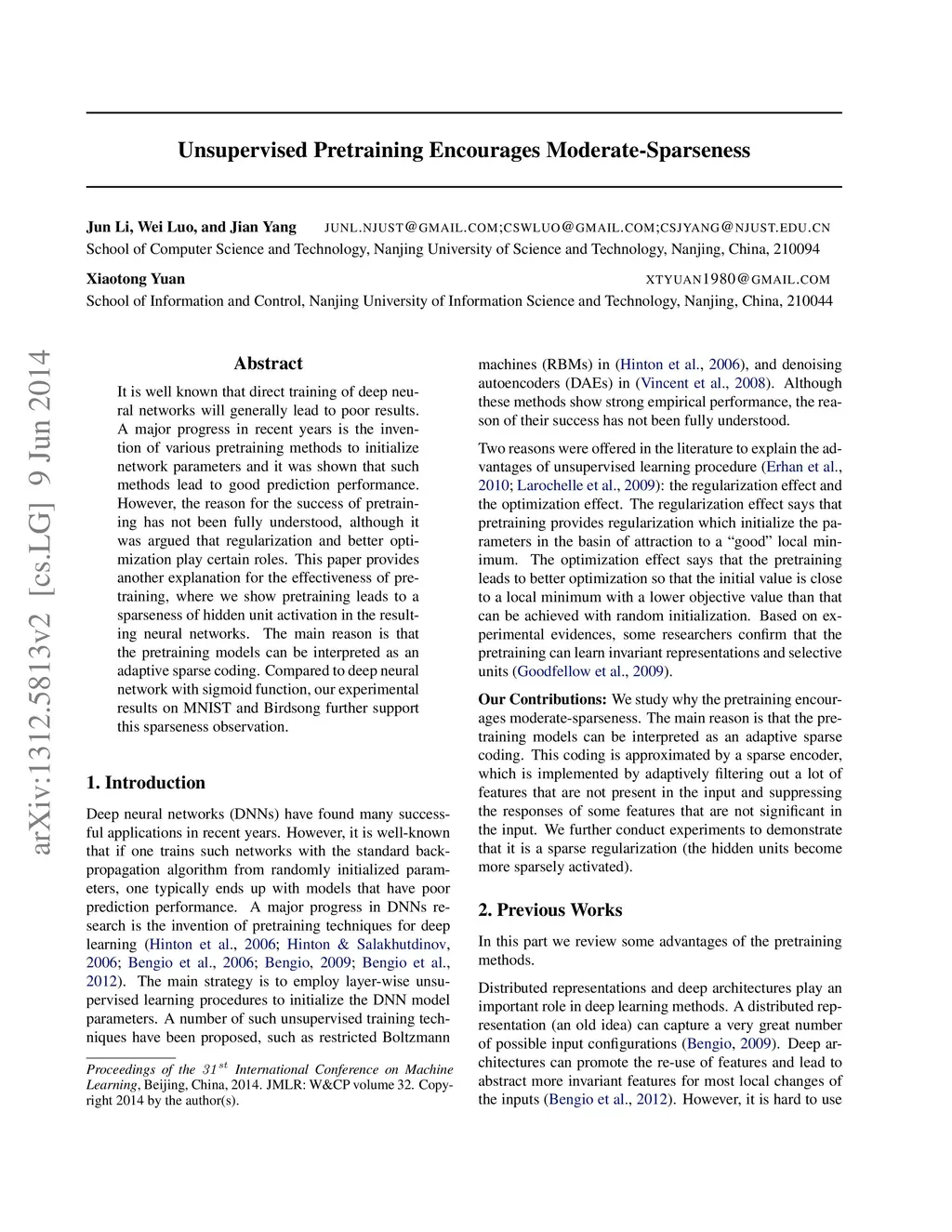 Unsupervised Pretraining Encourages Moderate-Sparseness