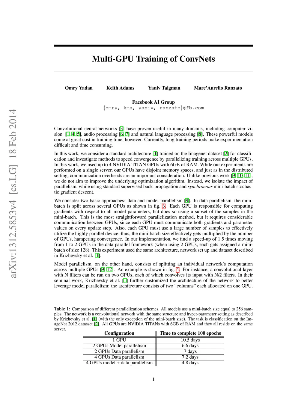 Multi-GPU Training of ConvNets